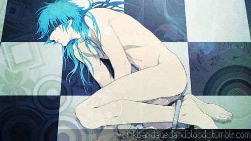History: Aoba was conceived from Toue's research, along with his twin brother, Sei. However after being born, by pure bad luck, the two of them had died. Sei was revived after the scientists cut their hair that connected the twins together but Aoba's breathing did not return. Tae, feeling immense guilt that a human had died due to her assistance in the research, took his body away, wanting to at least give him a proper burial. Along the way, Aoba had somehow regained consciousness, relieving her to the point of tears. Not being able to keep him, she drops him off at a nearby church by the beach, hoping he would be better off there than back with Toue. As he grew into a child, Aoba's skin pigment started to gain color as well as his hair, his appearance hiding any proof that he was not born normally. Aoba heard voices argueing in his head when he was younger unble to hear people talking to him, Aoba would often stop and sit at the beach alone with his thoughts. It was there that he met Nain, his future father, who would often talk to him about the world and many other things. Soon after, Aoba is adopted by Nain and Haruka and returns to Tae, much to her surprise. She believed this to be fate and easily welcomes him back into her life. As he grew up, Haruka and Nain were often gone for long periods of time due to them being "free spirits" and not liking to be in one place for a long time, according to Aoba. Tae raised Aoba in their place but she too was often gone due to her job as a nurse. Though they all loved each other without doubt, Aoba was often left alone, causing him to go to the park and cry by himself. It was then that Koujaku came into Aoba's life and became his best friend as well as his hero. Koujaku and Aoba would often play together, since Koujaku's mother and Tae got along well. Aoba was often teased for having long hair and feminine appearance and would get severely picked on, but Koujaku always came to his rescue. Although they did not spend much time together, they both cherished each other deeply. Later, due to family matters, Koujaku left Midorijima with his mother, and Aoba was left alone once again. As he grew older, Aoba finds a discarded, old-model AllMate in the trash that had the form of a fluffy, dark blue pomeranian dog. Aoba, feeling sorry for such a sight, decided to take it back home and fix it up himself. At some point, Ren transmitted his consciousness into the AllMate. Aoba had then become heavily involved in participating in Rhyme, earning a reputation amongst other players. Along the way, he met Mizuki, Virus and Trip. Aoba went under his Rhyme name, "Sly Blue" and often got into street fights. He became very violent, breaking his opponents' minds and causing permanent damage from using Scrap on them. However, after a certain incident, he was sent to the hospital and ended up losing all memories of his previous personality before. Due to his power, Aoba's mind was divided in three: the Aoba everyone knows, another personality symbolizing Aoba's Scrap power (often called "the other Aoba"), and Ren, whose role was to maintain the balance between the personalities as a guardian. However, after losing his memories ten years before the story; Ren had also lost his, becoming an entirely different entity in the process and believing he was truly just an Allmate. After being released from the hospital, Aoba began having severe headaches daily, which Tae suspected was from Scrap wanting to be released. She prescribed him pills and watched over his intake of them, relieved that they were effective. Afterward, they both began living a normal routine again. Aoba ends up getting a part-time job at Junk Shop Heibon, working as a sales clerk and claims to have been there for a long time now. He had no interest in participating in Rhyme or Ribsteez, declining offers to join teams, including Mizuki's. Koujaku had also returned, overjoying Aoba, and they remain in touch as much as they did when they were kids. Just as Aoba's life had begun returning to normal, the events of the game begin.